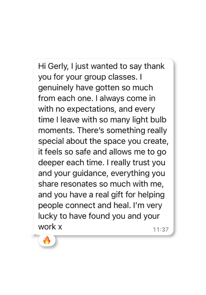 "The process of working with Gerly is a lot about meeting your inner children and understanding your behaviours from a deeper perspective. It helped me learn more about myself, what happens when I get triggered and how to move through it now, as an adult." - Naomi